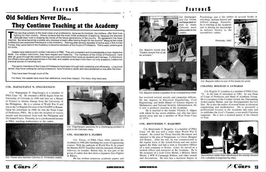 The article “Old Soldiers Never Die,” published in Corps Magazine by PMA, highlights the enduring contributions of the institution’s alumni. These retired members continue to share their expertise and experience, mentoring new cadets and enriching their professional development beyond theoretical knowledge.
